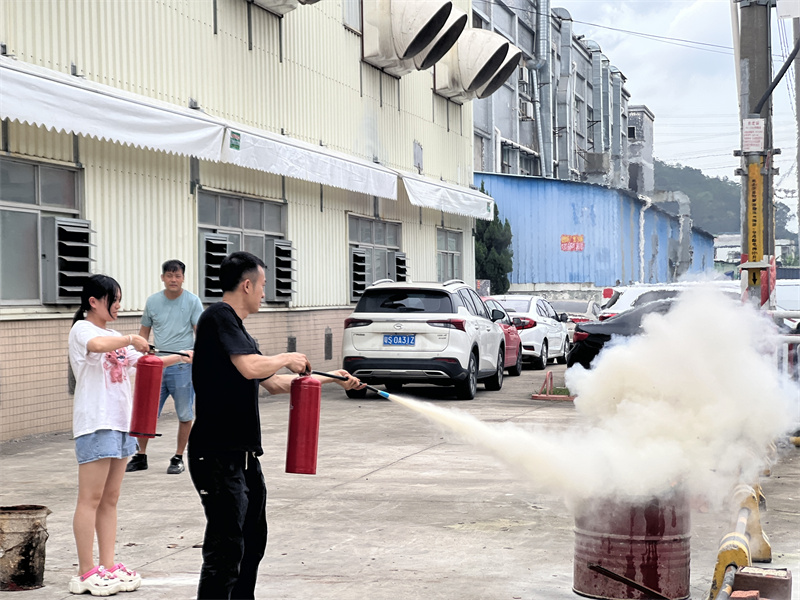 本次消防演练特别邀请了东莞市合盈消防工程有限公司的专业人员来到现场指导,全体员工参加了演练。为达到实战演练效果,提高组织人员疏散逃生能力,公司所有部门竭力配合。